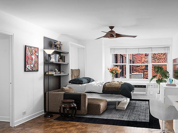 This thoughtfully renovated studio blends luxury details with space-saving solutions, perfect for stylish city living. Picture yourself in a pin-drop quiet home that features a beautiful chef’s kitchen, spa-inspired bathroom finishes, rich hardwood flooring, continuous daylight, and western exposure with views of city skyscrapers and charming ivy-covered buildings. The spacious floor plan easily accommodates areas for lounging, sleeping, working, and dining offering a versatile layout for everyday living or hosting. Perfect as a pied-a-terre or primary residence, this affordable home is a Must See!