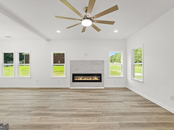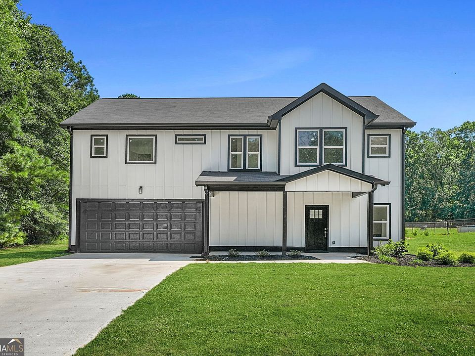 Experience modern farmhouse living on over an acre in this brand-new, light-filled residence. Perfectly placed windows and elevated fixtures create a bright, welcoming atmosphere from the moment you enter. Gorgeous LVP flooring grounds the main level for effortless everyday living, while lush new carpet adds comfort to the upstairs bedrooms. The open-concept main floor is designed for connection and flow. A chef-inspired kitchen showcases quartz countertops, a generous island, and smart appliances, seamlessly adjoining the dining area. A beautiful sliding door anchors the space and opens to the covered deck and expansive backyard-ideal for effortless indoor/outdoor entertaining. The family room is equally inviting, centered by an eye-catching fireplace and a custom accent wall. Upstairs, the owner's suite is a true retreat with dual walk-in closets and a spa-inspired bath featuring a large walk-in shower and a modern soaking tub. Three additional upper-level bedrooms offer excellent scale and storage; one is a private ensuite, perfect for guests or multigenerational living. Thoughtfully finished and move-in ready, this home pairs clean, modern style with everyday functionality-delivering the Covington lifestyle at the most amazing price for these features. Don't miss the opportunity to make this home your own.