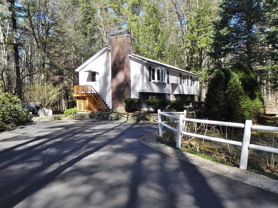 Wonderful and well maintained oversize Split Entry with 3 bedrooms and 2 full baths situated on private wooded 3 acres of land. Enjoy the spacious updated eat-in kitchen with new countertops and backsplash, large living room with gas fireplace insert, finished lower level with second gas stove in family room, new carpet, galley kitchen and a large den or 4th bedroom. Great set up for potential in law with walk out. Many updates include new metal roof and vinyl siding, newer windows, all new plumbing, new driveway, new hot water heater and generator stays. Plenty of storage, parking and privacy. Very clean and easy to show!