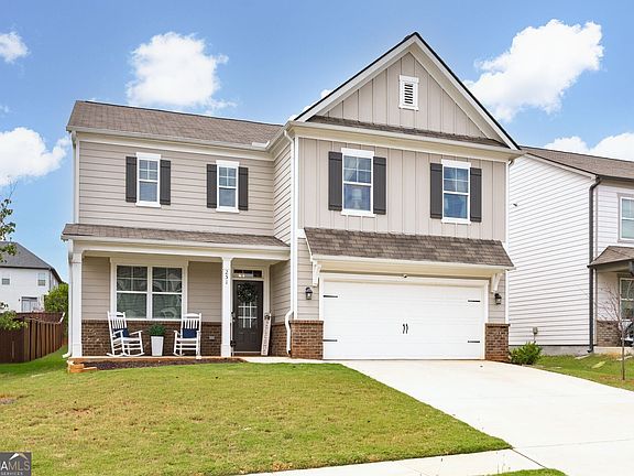 Welcome to this beautiful Galen floor plan in the sought-after Palisades community! From the moment you step onto the covered front porch, you'll feel right at home. Inside, a separate dining room opens to a bright, open-concept main level with LVP flooring and modern light fixtures. The kitchen steals the show with its large island, granite countertops, stainless steel appliances, stylish backsplash, and walk-in pantry - all overlooking a spacious fireside family room that's perfect for everyday living or weekend entertaining. Upstairs, you'll find generously sized secondary bedrooms, a shared bath with double vanities, and a convenient upstairs laundry room. The primary suite is oversized with a walk-in closet and a spa-style bath featuring double vanities, a soaking tub, and a separate shower. The backyard is flat and usable, with a patio that's just waiting for cozy fall nights and summer cookouts. Palisades residents enjoy fantastic neighborhood amenities including swim, tennis, clubhouse, playground, and sidewalks throughout the community. All just minutes from Downtown Dallas, shopping & dining along US-278, and the scenic Silver Comet Trail - where convenience meets community and home feels exactly right! 5.5% assumable mortgage!