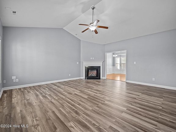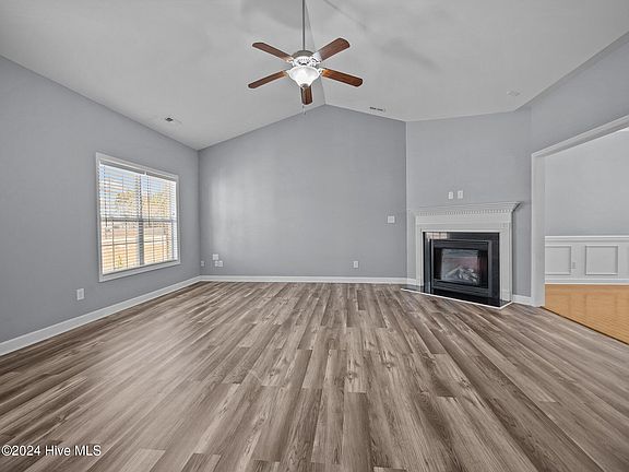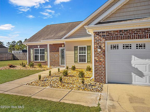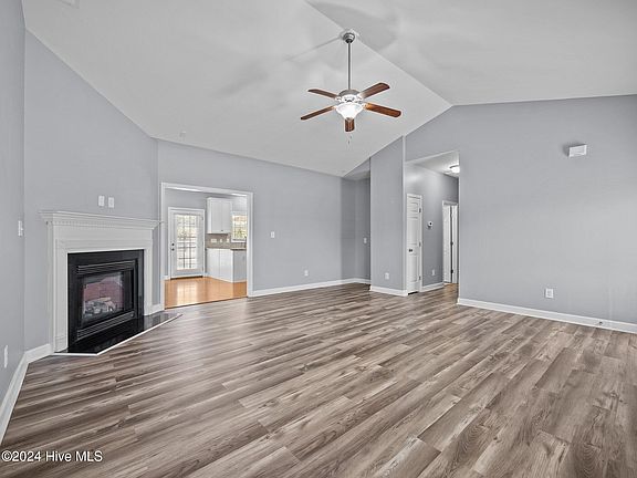 The buyer had to terminate due to personal reasons, so this amazing home is back on the market! Welcome to the gated community of Highlands at Queens Creek in Hubert, North Carolina! This beautiful, well maintained home features 1574 square feet of living space and sits on 0.64 acres. Outdoors you'll find a large front yard with fresh landscaping and ample parking, while the privacy fenced backyard is perfect for entertaining with the extended covered patio and also features a shed for additional storage space. Inside, the bright and airy living room includes a fireplace and vaulted ceilings and flows into the dining room and kitchen area. The kitchen features an abundance of gleaming white cabinets, generous counter space, granite countertops, a tiled backsplash, and stainless steel appliances, including a refrigerator. The dining room showcases elegant wainscoting and an accent bay window. The large master bedroom is beautifully designed with tray ceilings, dual vanities, a large soaking tub, and a separate shower. A lot of upgrades throughout!