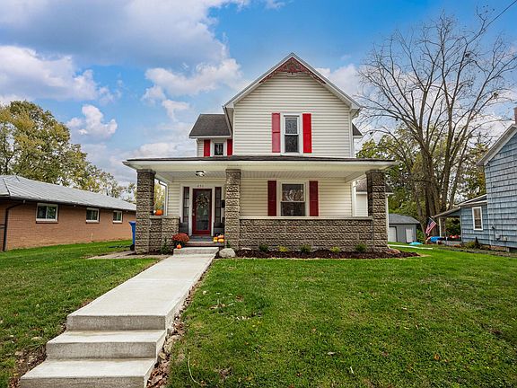 You'll fall in love with the stunning original woodwork, trim, & doors, complimented by modern touches like sliding barn doors and fresh paint throughout. A spacious kitchen features Amish custom cabinetry, SS Whirlpool appliances, and vintage porcelain tile that enhances its historic charm. The original dual butler's pantry offers both functionality & style, perfect for entertaining or extra storage. The entry/foyer has new windows, and is a showstopper entrance from the covered front porch with original stone pillars. Large living room area, formal dining room, and 1st floor bedroom, laundry, and full bath.