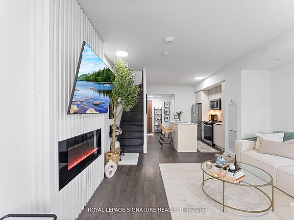 Welcome to your New Home. This 2 storey condo located in the heart of Etobicoke, offers everything you need. Empire Pheonix is a newly built condo that has amazing amenities such as rooftop patio, outdoor pool, party rooms, game rooms, city views of Toronto, sauna, steam shower, lounge lobby and a full gym. This walk out unit with street access is 2 bed, 1.5 bath with over 1000 sft of living space and parking included. It has a functional open concept layout with modern finishes. Updated lighting, washroom accents, custom electric fireplace feature wall and custom window blinds are a beautiful addition. Unobstructed Park views with private access to your unit is perfect for young families and pet owners. The unit oversees the new park that is a wonderful addition to the community and has a running track, soccer field,water park and gated dog park. This unit is close to shops, the QEW, Lakeshore, Downtown Toronto, parks, public transit, GO Mimico and more. Don't miss the opportunity to own in this thriving area.