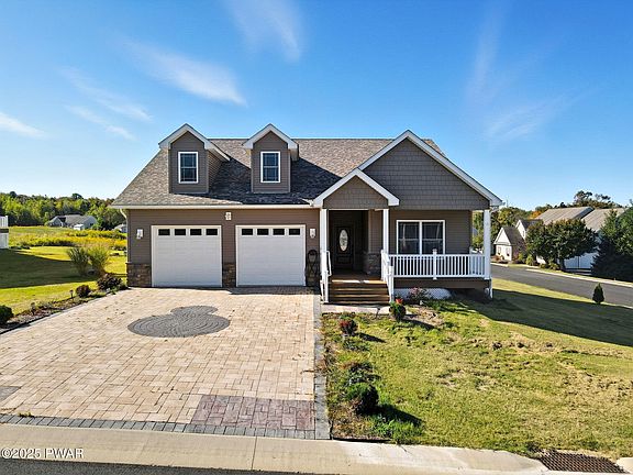 STUNNING, CUSTOM BUILT 4 BEDROOM, 3 BATHROOM HOME IN STONEFIELD ESTATES! This meticulously maintained, 2 year old residence is located within North Pocono School District. The main level features an open layout, seamlessly connecting the living, dining, and kitchen areas. The kitchen is a masterpiece, boasting high-end stainless steel appliances. A large center island with quartz countertops provides ample workspace and seating, while sleek cabinetry and luxury finishes elevate the design. The adjoining living room, anchored by a propane fireplace, is ideal for both cozy evenings and entertaining. From the dining area, step out onto the walkout back deck and take in breathtaking views of the surrounding countryside, perfect for relaxing or hosting gatherings. The first-floor primary suite is a private sanctuary, featuring a spacious walk-in closet and a luxurious bathroom with double quartz sinks, a large soaking tub, a walk-in shower, and elegant tile flooring. Two additional generously sized bedrooms and a full bathroom with a tub and tiled flooring are also located on the main level, along with a tiled laundry room and convenient access to the oversized two-car attached garage. The second floor offers even more living space, including a large fourth bedroom with a bathroom featuring tile flooring and a tub. An additional bonus room on this level provides endless possibilities, whether as a home office, playroom, or personal gym. Designed with energy efficiency in mind, this home features high-efficiency heating and air conditioning systems for year-round comfort. The full walkout basement is a blank canvas, ready to be transformed into a recreation room, home theater, or additional living space to suit your needs. Situated in a peaceful neighborhood, this home is in immaculate condition and offers modern conveniences. With its luxury finishes and prime location, this property is the perfect place to call home!