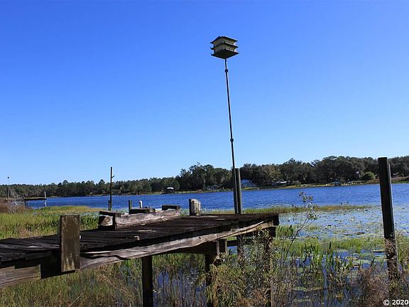Meticulously maintained and completely furnished waterfront home on Clearwater Lake. New aluminum siding, new front door, new front windows and front porch added in 2012. Roof replaced in 2009. 3 bedroom 2 bathroom split floor plan. Large Florida room overlooking this gorgeous 1.24 acre lot. Wood burning fireplace, newer storage shed, lots of green space and beautiful mature oak trees with a nice wooded buffer leading to the neighboring property. Clearwater lake is great for swimming, fishing, and enjoying the peace and quiet. Easy commute to Gainesville & Ocala.