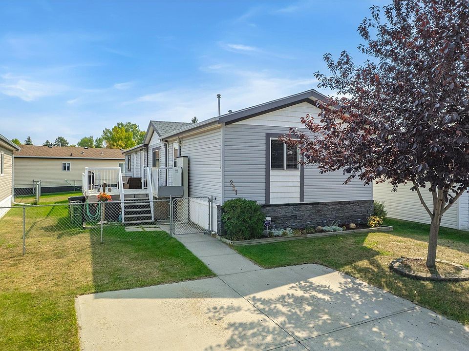 This over 1500 ft home built in 2007 is located in the family friendly community of Maple Ridge. There are 3 bedrooms, 2 bathrooms, large kitchen, a fenced yard, a spacious 500sq ft deck & central A/C. Open concept plan includes the island kitchen with eating bar, ample cabinet and counter space and a pantry. The living & dining room are spacious with vaulted ceilings. Laminate flooring runs through most of the home with carpet in bedrooms. The master bedroom is a good size, room for a king size bed, walk in closet & 3pc ensuite with full size 5' shower. The additional 2 bedrooms are both a good size with ample storage one even has a walk in closet! Enjoy your evenings & weekends on your huge deck in the landscaped, fenced yard while the kids play. Storage shed also stays. Playground, ball diamonds, soccer fields are all nearby. This unit comes with a wheelchair ramp, so there is accessibility options with this home. There is visitor parking across the street if you are entertaining.