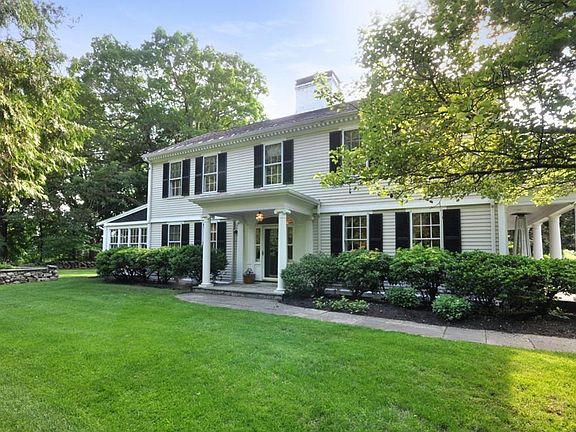 This place has it all! A quintessential New England estate featuring a 6060 sq ft Farmhouse with 4-5 bedrooms, 4.5 baths, open Kitchen/FR plan, 3 car heated garage, doggie room, gym, expansive patio, putting green, BB court and custom treehouse on exquisitely landscaped private land totaling 15 acres. Inside you'll find charm, character and architectural details dating back to 1905 like original wide plank pine floors. Streaming into the kitchen, family room, study and glassed-walled breakfast room is natural light and late afternoon sunsets. The master bedroom is en-suite with a walk-in closet. Additional bedrooms, 3 baths and laundry room are on the second floor. A great Great Room for the kids and family movie nights is the perfect hang out. Accompanying all this is a 4-stall barn for equestrians, car collectors, or convert to a grand guesthouse. Trails for walking, snow shoeing, ATVs or horse-riding meander through the property. Development potential. All this close to the city too