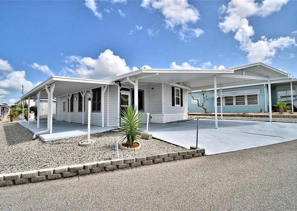 BEAUTIFUL FLORIDA OASIS located in a 55+ GATED community in the heart of CENTRAL FLORIDA and you OWN YOUR LAND. Home offers 1B/1.5B with BONUS ROOM. Open Kitchen with all appliances conveying with a separate dining room. 18x12 Florida Room/Living Room. Hurricane grade windows installed. Shed is equipped with Washer/Dryer and room for storage. Rock yard for low maintenance care while here full-time or seasonal. Concrete COVERED PATIO down the side of the home with Sun Shades if needed. COVERED PARKING for 2 vehicles. COMMUNITY AMENITIES INCLUDE: Solar-Heated POOL, Recreation Hall, Mini Putt Putt Golf, Shuffleboard, Pickle Ball, Bocce Ball and many MORE. Located near restaurants, medical, shopping and major roadways that lead you to FLORIDA ATTRACTIONS and both EAST/WEST COAST BEACHES! Come join the Florida Lifestyle of WEST VIEW RIDGE you will be glad you did. SELLER MOTIVATED.