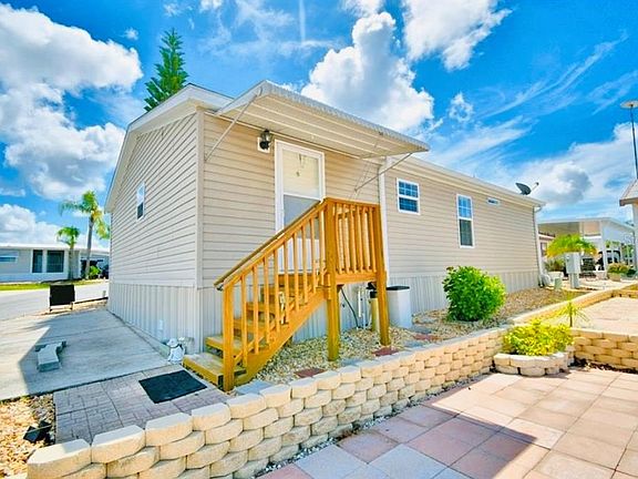 Motivated Seller. Priced to sell, this beautiful and cozy 3-bedroom, 2-bath manufactured home located in a secure, gated 55+ community with LAND OWNED. The open floor plan creates a spacious and inviting living area, while the modern kitchen boasts beautiful countertops and plenty of cabinet space, perfect for cooking and entertaining. This home is ideally located near major highways, hospitals, and shopping centers, providing convenience and ease of access. Just 20 minutes from the Disney area, it offers the perfect blend of tranquility and excitement. Enjoy the peaceful lifestyle of this vibrant 55+ community!"