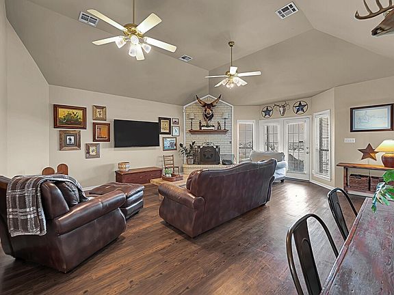 This custom-built home sits on 2.98 Acres in Bosque County! It is nestled on a corner lot in the coveted Whispering Ridge Sub-division surrounded by ranch land providing spectacular views from the backyard. There are large mature trees surrounding the home to shade from the hot summer sun. The home itself is 2621 square feet offering 3 bedrooms & 2 full bathrooms. The master bedroom has a large walk-in closet & a recently updated master bath with dual sinks, oversized tile shower and a built-in makeup vanity. This home is a split bedroom arrangement with the 2 additional bedrooms located on the opposite side of the house. The custom kitchen offers granite countertops, a kitchen island with electrical plug and ample storage for all of your cooking or baking needs. There is a breakfast nook, formal dining room & a great living room with raised ceilings & a cozy fireplace. The pool house built in 2018 is 780 square feet and has a full bathroom, wood slat ceiling and a cozy fireplace. The porch is a great place to sit in your rocking chairs and take in the views. The pool house is perfect for added living space or hosting friends and family. There is a built in outdoor firepit and landscaping throughout. The 1,000 square foot pool has a diving board and a sundeck, a decorative retaining wall and plenty of space to entertain your family or friends. The barn-workshop is 40x30 and has 5 roll up bays, electricity and plenty of storage for all of your needs. There is an outdoor basketball court and a batting cage. This home offers all of the amenities you are looking for and is a must see.