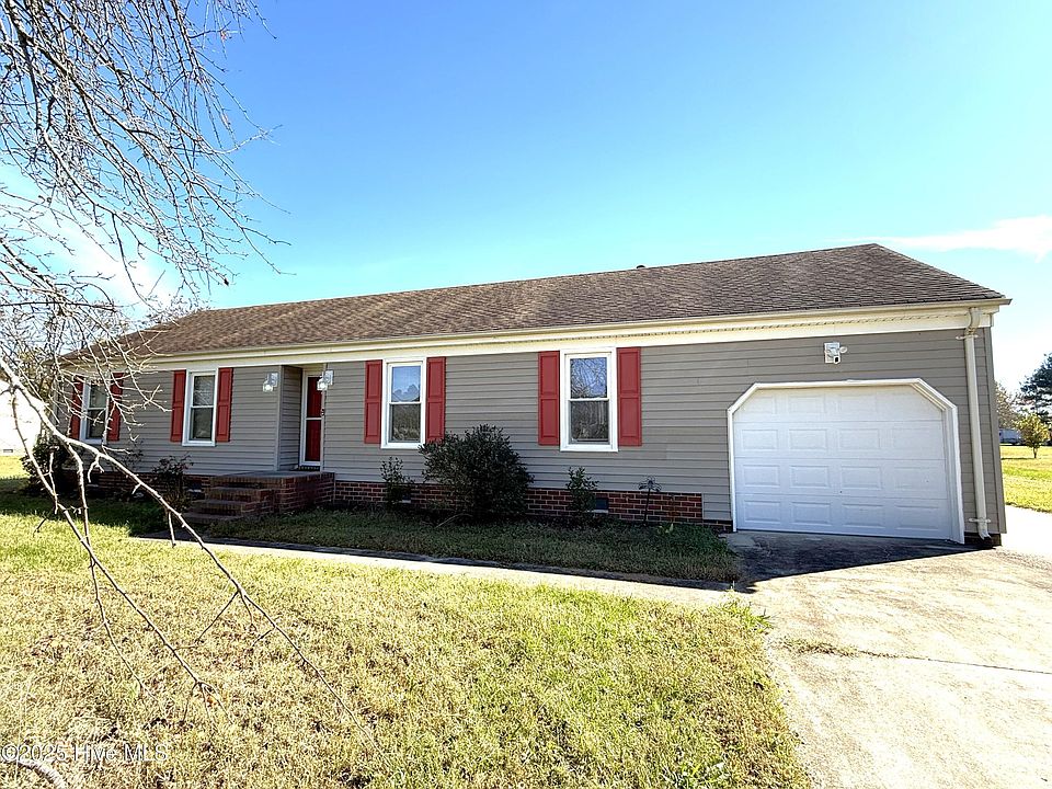 Lovely 3-bedroom, 2-bath ranch home nestled in the desirable Quail Run community of Moyock. Situated on over an acre, the property boasts mature landscaping including blueberry bushes and a pear tree—perfect for outdoor enthusiasts. Inside, you'll find a thoughtfully updated living space with a large open living room, a separate dining room space and the kitchen shines with new quartz countertops and stainless steel appliances and a breakfast nook. The primary bedroom's full bath has also been recently remodeled. The unheated Finished Room Over Garage (FROG) offers incredible potential and could easily be converted to heated space with a mini-split or ductwork extension. The FROG also provides access to a massive, easily accessible attic. Major upgrades from 2019 to 2025 include a new septic drainfield, HVAC, hot water heater, windows, window trim work just replaced and a newer back deck. With over an acre of land, there's so much potential for expansion for a future detached garage, addition to a home. This home is NOT in a flood zone or HOA and only 3 miles from the VA/NC line. You'll fall in love the minute you step inside!