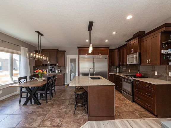 This exquisite bungalow in Devon’s premier Ravines of Devon area is ideal for the multi-generational family. The main floor features a stylish open living area w/chef’s dream kitchen: commercial appliances, granite countertops & huge w/I pantry. The living space also offers a focal fireplace wall, coffered ceiling, wetbar & doors to the outdoor living space. The principal suite fits a king bed & includes a w/I closet & spa ensuite w/jetted soaker tub & large W/I shower. The 2 additional bedrooms share a 5-pc Jack & Jill bath.Completing the upper space, a huge mud room w/laundry. The lower level features a common space for combined family time. The separate in-law suite has infloor heat & includes a full luxury eat-in kitchen, spacious living area & primary suite w/5-pc ensuite & w/I closet. There’s also a flex space/mud room, laundry & private terrace area. 32x25 heated garage w/in-floor drain & water. Beautifully landscaped, easy-care yard w/room for RV parking on the extended driveway.