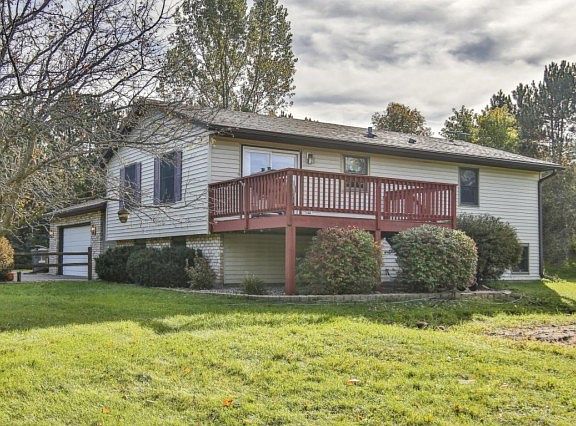 back on market with fresh kitchen counters! Super desirable Hudson school district location close to the Stillwater Bridge! Great 5 bedrm split level with 3 upstairs! Newly stained deck off the informal dining room, semi open concept. Hard to find acreage with mature pines for privacy, mulberry, apple trees, asparagus and fenced raised bed gardens!