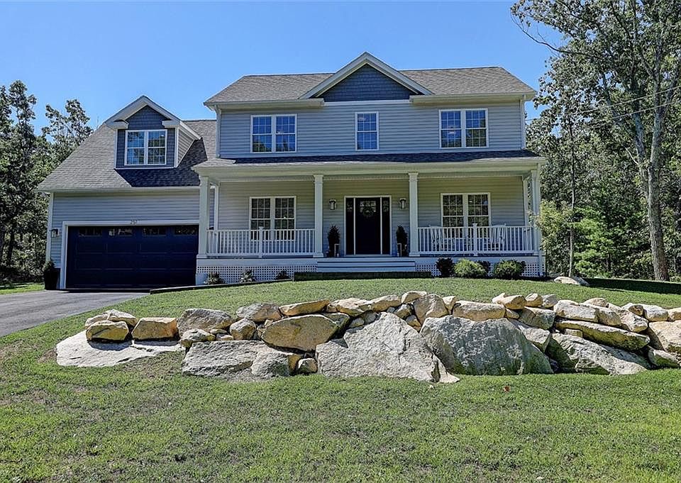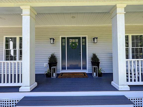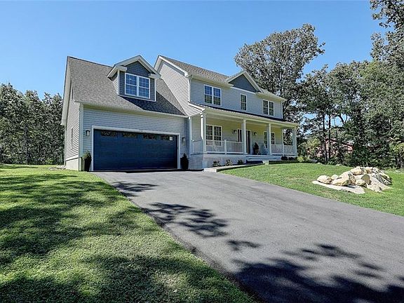 Constructed in late 2018 is this beautiful Colonial home featuring 4 bedrooms and 2.5 baths with 2400 square feet of living space situated on 10 acres! The home's front farmer's porch is perfect for some morning coffee. Step inside to the sparkling hardwood floors that flow throughout the first level. A spacious formal dining room with wainscoting and crown molding are also throughout. A gorgeous center island kitchen with white wood cabinetry paired with granite countertops, a tile backsplash and stainless steel appliances make for easy entertaining with the kitchen's open layout to the home's front to back living room. Glass sliding doors open to Trex decking for some al fresco dining in your own private backyard. The first floor is completed with a half bath and two closets. Retreat to the second level, where hardwoods and a laundry closet are located at the top of the stairs. The home's primary suite is bright and spacious with hardwood floors, custom shelving in the walk-in closet, a full spa-like master bath, glass doors to the shower with custom tile and a double sink vanity. 3 additional generous sized bedrooms with ample closets are located on this level complemented by a full tile bath, also with a double sink vanity. This home has a full, unfinished basement - great for storage - a two car garage and central air.