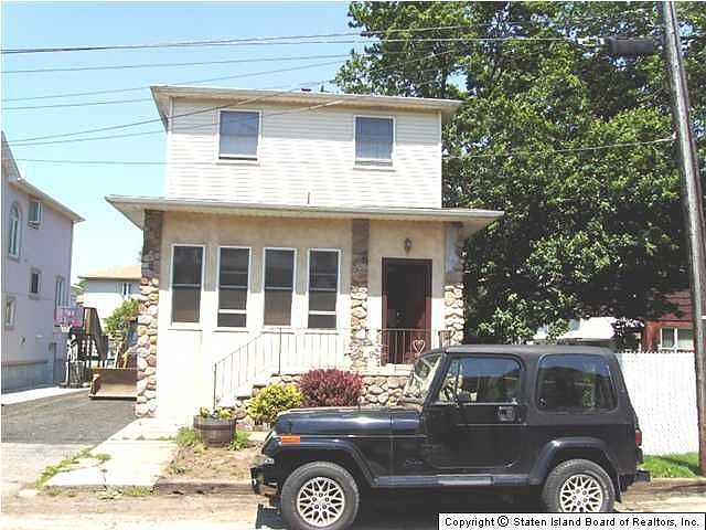 Looking for that perfect escape from the city? This Mediterranean style villa is nestled on a quiet block in a desirable mid island location. The exterior of the home has been finished with stucco, natural stone, and wrought iron to give the homeowner the feeling they have arrived at their hillside Villa. Enter into sunlit terracotta tiled enclosed porch which flows into living room, dining room and kitchen. Open concept with soaring 11' ceilings, wall of stone, and double French doors to terrace. Luxury wood look vinyl flooring and 18,000 BTU split unit a/c cools first floor. Kitchen is recently updated with maple cabinets, stainless and a lot of country charm.