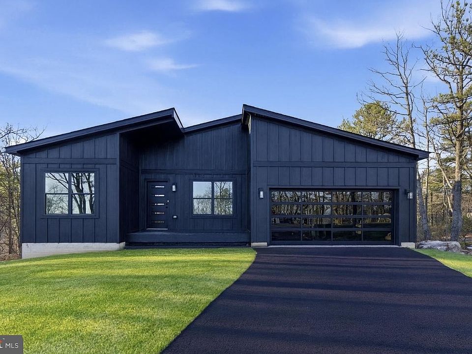 MOVE- IN READY!! This stunning new construction Mid-Century Modern home is nearly complete and located on a spacious 0.92 - acre lot in the desirable Woods Resort, offering beautiful mountain views . The Berkeley floorplan provides over 1,800 finished square feet on the main level, plus an additional 1,800 sq. ft. walkout basement with 9’ ceilings—perfect for future expansion or storage. The exterior showcases black siding for a bold, modern look. Inside features include luxury vinyl plank (LVP) flooring throughout, all-black interior doors with coordinating hardware, and a cozy living room fireplace framed by a black accent wall with wainscoting. The kitchen is equipped with white cabinets, stainless steel appliance package, and a large center island ideal for entertaining. The spacious primary suite includes a bold black wainscoted accent wall and an en-suite bathroom featuring a barn door and custom tile shower & modern finishes. Step outside to a 26’ x 10’ composite Trex deck with sleek cable railing, perfect for enjoying the peaceful natural setting. The home is eligible for Class A Woods Resort Membership, which offers amenities to indoor and outdoor pools, a spa, sauna, fitness center, golf courses, tennis courts, and more. Don’t miss the opportunity to own this stylish and thoughtfully designed home—