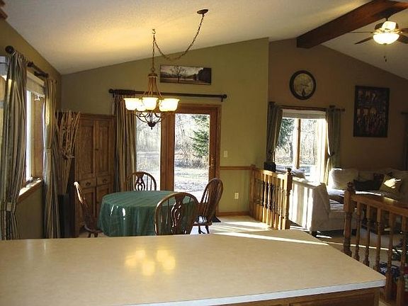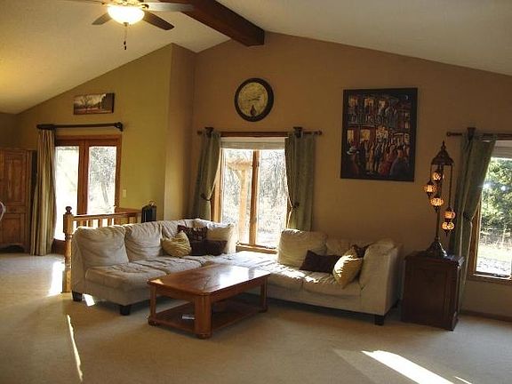 Open concept ranch home on 4 plus wooded acres. Living room has cathedral ceiling and wood burning stove. Master Bedroom with cathedral ceiling, full bath and walk in closet. Finished lower level with rec room and bonus room plus a work room with storage. Large stamped concrete patio with cedar pergola for summertime relaxing. Quiet living at its best!