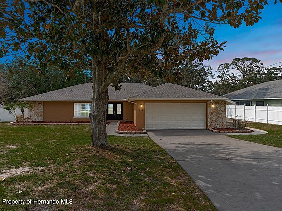 Welcome to your oasis of luxury living! This spacious 4 bedroom, 2 bathroom Pool Home which includes a brand NEW Roof, featured vaulted ceilings and a generously sized living area, perfect for both relaxation and entertaining guests. The modern kitchen boasts top-of-the-line appliances and a breakfast bar, while sliding glass doors lead to an expansive backyard retreat. Here, you'll find a screened-in pool with a pool house, and a deck bar for outdoor entertaining under the stars. With ample space for outdoor activities and gardening, this backyard oasis offers the perfect blend of comfort and luxury living. Don't miss the opportunity to make this exquisite property your new home! Schedule a showing today and experience resort-style living at its finest. Home is a repaired sinkhole home (2023) and comes with a lifetime transferable warranty.