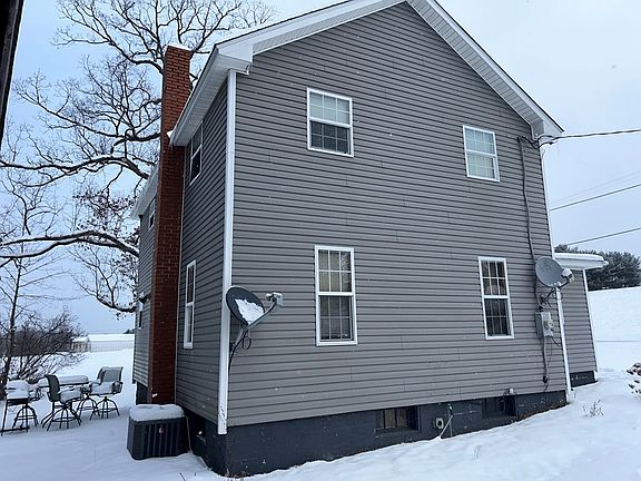 Great country location with nice side yard and HUGE garage. New siding around 2012, new roof in 2020, newer windows, carpeting replaced in 2018 and furnace with air conditioning installed 2020. Nice sized entry/sunroom from parking area. One bedroom on 2nd level was originally two bedrooms so home could be three bedroom if needed with installation of a partition wall. Garage is 30' x 42' with steps to 2nd floor storage area. Garage can accommodate 4 vehicles or 2 cars and large workshop area. Public water and 2nd floor bathroom has washer/dryer included.