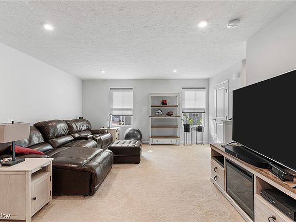 The living room boasts multiple windows that fill the space with natural light, complemented by recessed lighting for a bright and airy atmosphere.