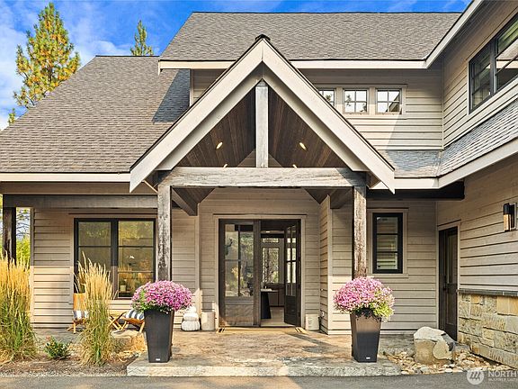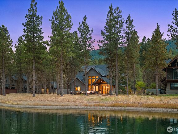 Experience refined mountain living in this custom-built smart home nestled on the tranquil waterfront of Paint Brush Lakes. Designed with soaring ceilings and open-concept layout, this home offers serene water views and a seamless indoor-outdoor lifestyle. Expansive outdoor living area includes a covered kitchen, firepit, & hot tub. Inside, find ideal spaces for entertaining, including a spacious great room, home office, main-floor primary suite, plus 3-guest suites for ultimate comfort. Built for all seasons, enjoy heated floors, snow/sport gear room, & boot dryer hookup. Just a golf cart ride to the golf shop, clubhouse, pool, gym, trails, & Domerie Park - Only 80 miles from Seattle/Bellevue - this is mountain living at its finest!