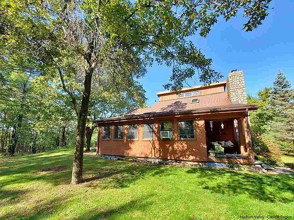 MAJOR PRICE IMPROVEMENT! Bring in your offers! Owner is very motivated to sell. Opportunity awaits at this country contemporary dream! Designed and built by its owner, this delightful 5 acre oasis sits atop a mountain, yet is only minutes from the thruway, local shops, and amenities. Custom design elements make this private home stand out. A long driveway introduces you to a serene and tranquil property surrounded by a garden, chicken coop / shed with electric, above-ground pool with new filter, and relaxing sunset views. As you enter the home, you will walk through a comfortable lounge area with a pellet stove that works perfectly as a den, office, extra eating area, or even an area where you can possibly add a 3rd bedroom (as per tax records)! As you continue through the house, you will find a majestic and beautiful Belgian Block wood-burning fireplace with soaring ceilings accented by beautiful barn beams and skylights. Dining room and kitchen with solid oak cabinets follow with the laundry room on the main floor. Ensuite bathrooms with jetted tubs for both bedrooms - one bedroom located on the main floor and the other bedroom located up the beautiful wide staircase with a cedar closet, double vanity sink, and sunset views. Tall ceilings are consistent throughout the home, even leading down to the basement where ample storage, utilities, a workshop area, and an oversized 2-car garage are all located. Central vacuum, 15,000 watt generator, 5 zone baseboard heat, 3 year old energy-star boiler, new shingled roof & gutter guards, recently maintained and serviced split unit, and many more reasons to make 251 Stickles your new home. Most of the furnishings are negotiable and seller is extremely motivated!