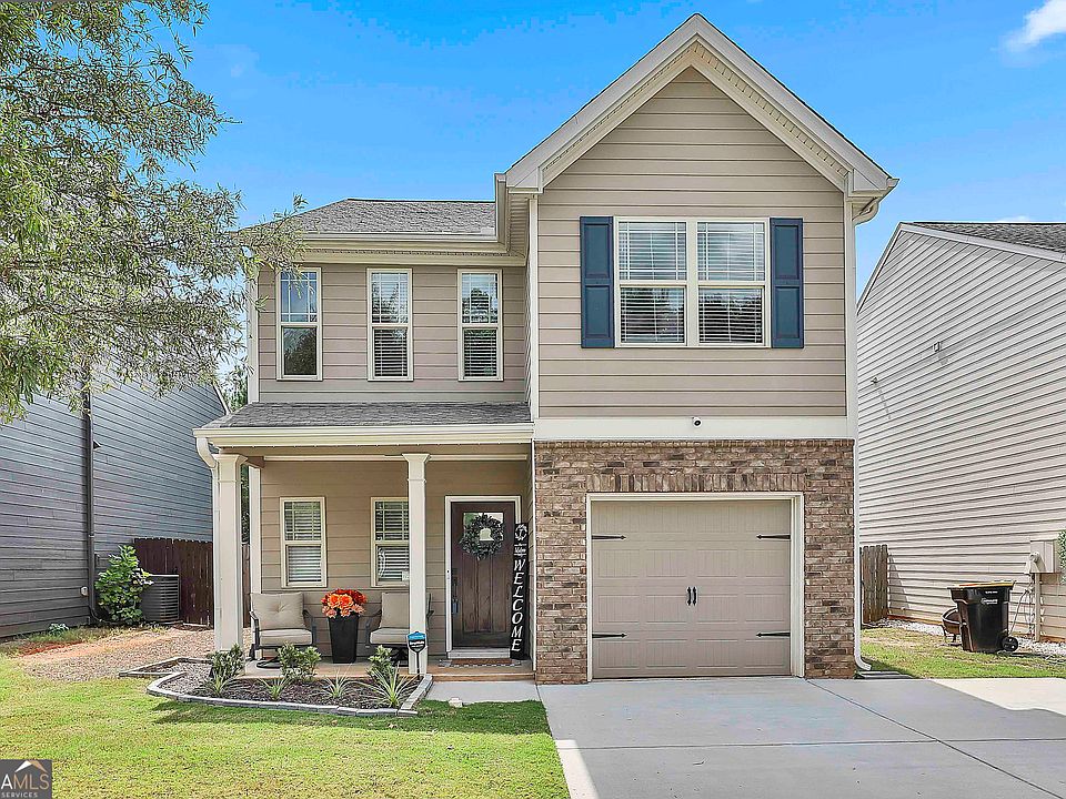 LOTS OF NEW IN THIS TOTALLY MOVE IN READY HOME w/ GORGEOUS UPDATES + NEW UPGRADED HVAC! Enjoy delightful covered front Porch with gleaming hardwoods that greets you as you step into the wide Foyer entrance. Beautiful craftsman moldings added to walls for an extra decorator touch. Step further into the gorgeous open Kitchen w/ all NEW SS Appliances & Frig. Granite counters, tile backsplash & abundance of cabinet & counter space await you. NEW Craftsman moldings installed throughout main level. Spacious Open Family rm & large Dining rm is the spot for everyone to gather. NEW Fresh warm white painted walls in soft Alabaster brighten the interior & show off the NEW lighting throughout. Upstairs leads to expansive Primary Suite w/ sitting area perfect for office or exercise space. Large Walk in closet, Sep Shower & Tub. 2 more good sized secondary Bedrms + all NEW updated secondary Bathrm w/ NEW Vanity, tile floors & shower tub combination. Terrific Fenced Backyard w/ lush lawn & oversized back patio + storage shed on concrete pad. You'll love the New permanent exterior LED holiday lighting on front of home - set the tone for every season! Lifetime warranty & remote access. This home is ready to go... enjoy amenities of the Cottages at Stillwood to include Sidewalks, Pool, Playground, Lawn weed & feed and quick access to shops, restaurants, grocery, medical & quick access to I-85, Atlanta & Airport.