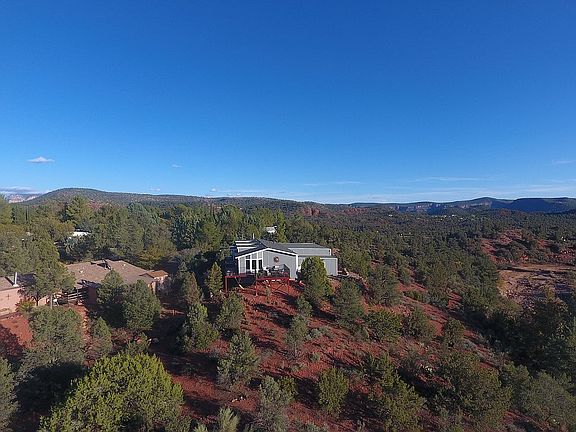 Very private, elevated home with wide panoramic views over 1000s of acres of forest land, plus some red rocks to the north. The sunsets here are breathtaking. This big 1.25 acre lot of natural landscaping borders forest land! 1857sf, 1990 manufactured home, 3BD/2BA, great room and living room, plus space for your toys in the HUGE 36ft RV carport, w/adjoining office/shop. This beautiful home has been completely updated and remodeled including kitchen and baths. Birds and wildlife flourish here on the edge of the forest: deer, elk, bob cat, javalina and birds. New 30 yr. roof in 2018, all new plumbing in 2015, new deck, new windows, new tile flooring. A/C AND evap. cooling - the best of both worlds. 6'' insulated walls. 3 yr old hot tub included. This is the most tranquil location in Sedona the hot air balloons fly over almost every morning we have videos of over a dozen elk below the house. Deer everywhere feel free to call with any questions. Mike 559-805-4452