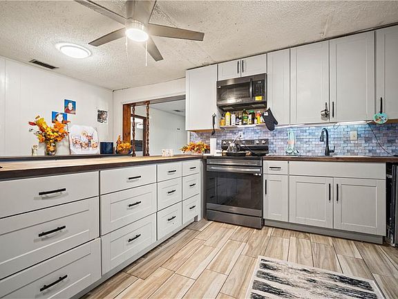 New roofPrivacy-fenced backyardButcher block countertopsOpen concept designBright sunroomFamily roomUpdated kitchen