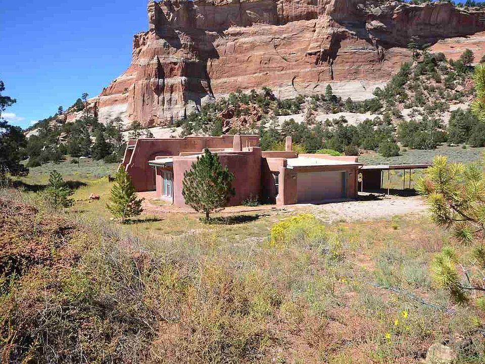 Spectacular Property! Picturesque views! Home is nestled next to a red rock mountain! Pueblo style home featuring custom wood & viga ceiling, 3 kiva wood burning fireplaces and custom lighting! Fabulous entry! Arched doorways! Brick flooring in family room! Gorgeous custom cabinets in kitchen! Master suite features full bath with separate shower, jetted garden tub & cozy fireplace! Secondary bedrooms include built in drawers & cabinetry! 2 car garage, plus 2 car carport! 360 views! Surrounded by mountains, trees & red rock cliffs!