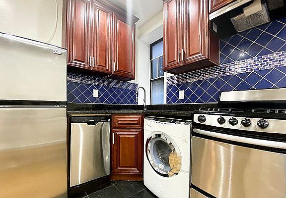 RENOVATED, SPACIOUS 2 bedroom with a Modern Open Living Space and Laundry In-Unit! Sleek living space off of a beautifully renovated kitchen with stainless steel appliances, granite countertops, dishwasher, and an IN-UNIT WASHER/DRYER! Two SPACIOUS bedrooms with hardwood floors, closets and high ceilings, and a beautifully renovated tile-bathroom! Located on Amsterdam Avenue near multiple transportation options, grocery stores, restaurants, shopping, Columbia University, and plenty more! Reach out today for a private tour! Photos of a nearly identical unit one floor up on the same line