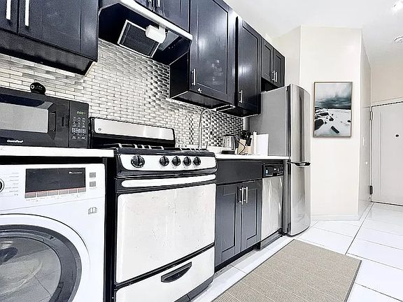 The separate kitchen area features modern appliances, stylish countertops, and plenty of storage, perfect for creating your favorite dishes.