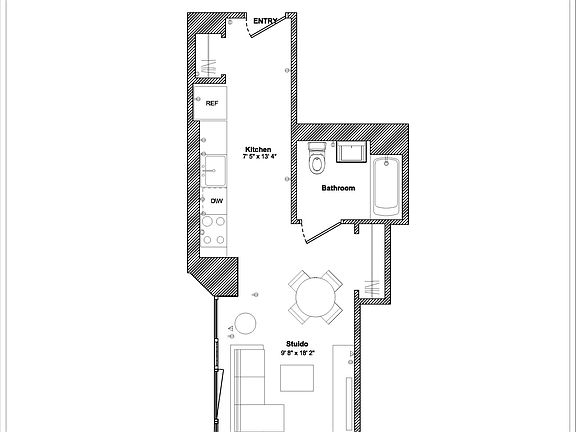 Video intercomHigh ceilingsStainless steel appliancesSpacious studio apartmentPlenty of closet spaceHardwood floorsLarge windows