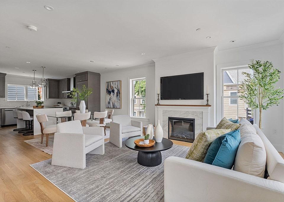 Welcome to 251 W Third St, a newly built corner townhouse on South Boston’s coveted West Side, moments from the Seaport, South End, dining, and parks. With over 2,000 sq ft, this corner end-unit is bathed in natural light from 30 windows and lives like a single-family home, offering 3 bed + a study/4th bed, 3.5 baths, and a private garage with additional exterior tandem parking. Built by a renowned Back Bay/South End builder, the residence offers timeless design with a functional plan. A spacious living/dining area is equipped with a fireplace and opens to a sleek kitchen with grey wood grain cabinetry, Thermador appliances, a large pantry, and a center island. A full-floor primary suite impresses with a spa-like bath including a dual-shower wet room and soaking tub, plus an adjacent study/nursery. Upstairs, find two additional bedrooms with en-suite baths, laundry, and stairs leading to an expansive corner roof deck with panoramic city and Seaport views. Complete and ready to move in!