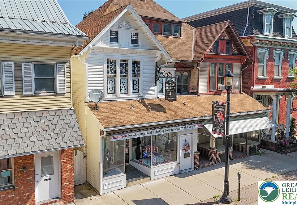 Own a Tamaqua landmark business and guide it into its next century! A staple of the community, this men’s clothier has been a convenient and thriving retail business while also offering tailoring, dry cleaning, and rental services for over a century. With two spacious display windows, the commercial presence is readily projected onto Tamaqua’s main street and the recently restored façade certainly catches the eye. The commercial space begins with a sprawling front retail space with 10.5’ ceilings and ample built in shelving; a second retail space offers hanging racks and other means to display inventory as well as counter space to conduct business. Further back, space for office and tailoring, also allows for inventory storage. To the rear an expansive space contains ample room for inventory storage as well as two dressing rooms and a half bath. It also offers access to the rear of the with potential off-street parking for up to four vehicles. The basement offers over 800sf of storage space. Upstairs, an occupied residential unit currently leases at $1200/month. The recently renovated unit offers 2 beds, 1 full bath, and office area. Join Tamaqua’s renaissance and continue be part of the history of the storied establishment.