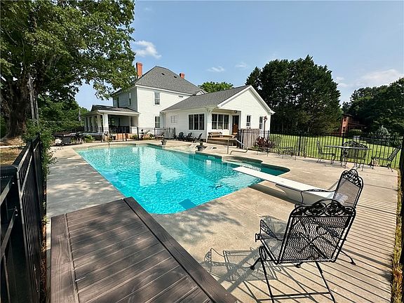 A Blend of Heritage and Elegance - Spanning approximately 3,880 square feet, this 4-bedroom, 3.5-bath residence was built approx. 100 years ago and has been thoughtfully restored to honor its original craftsmanship while incorporating contemporary updates. Original heart pine flooring and four masonry fireplaces evoke a sense of history, while modern amenities, such as an inviting in-ground pool with mountain views, ensure everyday comfort. The massive wrap-around front porch is the epitome of Southern comfort, offering outdoor dining and entertaining opportunities.