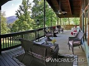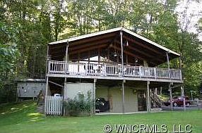 Cozy 2BD/2BA, bonus room, house located only minutes to the heart of Maggie Valley. Enjoy fabulous year-round mountain views from the covered wrap-around deck or from the wall of windows in the great room! Quality built home with exposed redwood beams, gas fireplace, master suite with tub/shower combo, kitchen with breakfast bar. Basement features 2nd master suite as well as third bedroom and spacious family room! Attached 1 car carport, completely paved access, and shed for storage.
