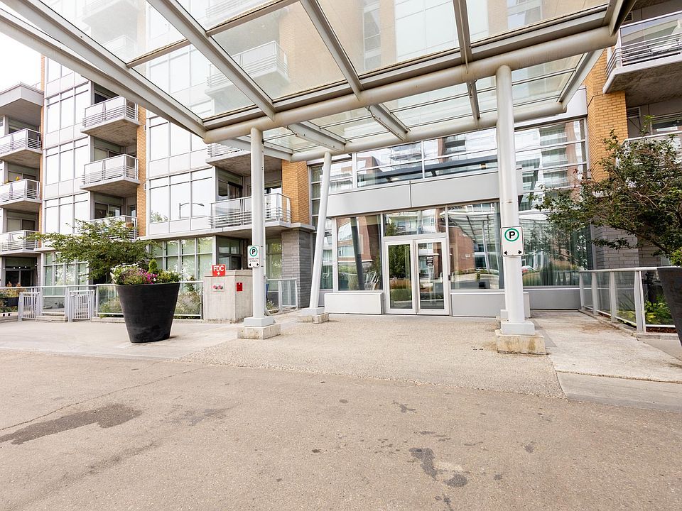 Experience modern living in this 752 sq. ft. 1 bedroom, 1 bathroom condo at Century Park. Central A/C keeps the space comfortable year-round, while hardwood and tile flooring add style throughout. The full-sized kitchen is equipped with granite countertops, a gas cooktop, built-in oven, fridge, microwave, dishwasher, and abundant cabinetry. Entertain with ease at the large island and adjoining dining area. The living room features expansive windows and a cozy fireplace, with access to the balcony complete with gas BBQ line. The spacious bedroom accommodates a king bed and offers dual closets leading into a spa-inspired bath with glass/tile shower and deep soaker tub. In-suite laundry adds convenience. Comes with titled heated underground parking and titled storage . Building amenities include fitness centre, bike room, visitor parking, green space, and playground. Steps to restaurants, shopping, medical services, and the Century Park LRT. CONDO FEES INCLUDE ALL UTILITIES!