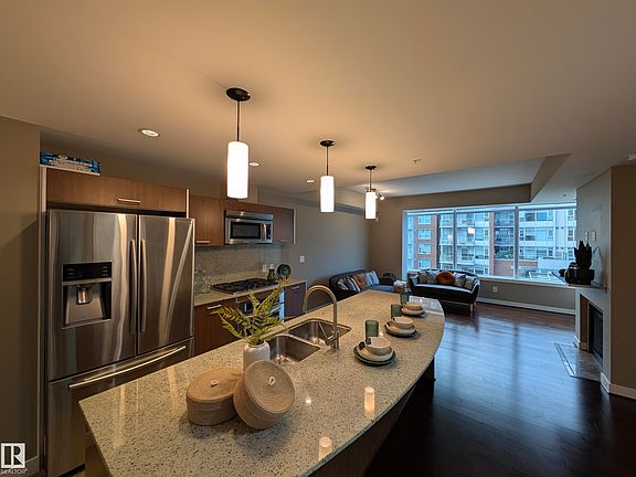 Central A/C, 747 sq.ft, 1 Bdrm 1 Bath Condo in Century Park. Full size Kitchen w/ Granite Countertops, Gas Cooktop, built-in Oven, Fridge w/ water & ice dispensers, OTR Microwave, Dishwasher & plenty of Cabinet Space. Host your guests at the Spacious Kitchen Island and/or the adjacent Dining Room. Living Room has Large Windows & Cozy Gas Fireplace. Balcony comes with Gas line BBQ & views of green space. The Bedroom fits a King Bed plus more. Walkthrough the His & Hers Closets & into the Spa-Like 4pc. Bath w/ Glass/Tile Shower & Deep Soaker Tub. Hardwood & Tile Flooring throughout. In-suite stacked laundry completes this unit. Garbage Chute just down the hall by pair of Elevators. Titled Heated Underground Parking & Titled Storage. Amenities: Visitor Parkings, Bike Room, Workout Gym, Green Space & Playground. Walkable to restaurants, shopping, medical centres & Century Park LRT/Bus Station. Condo Fee includes All Utilities (Gas/Water/Elec/Internet).