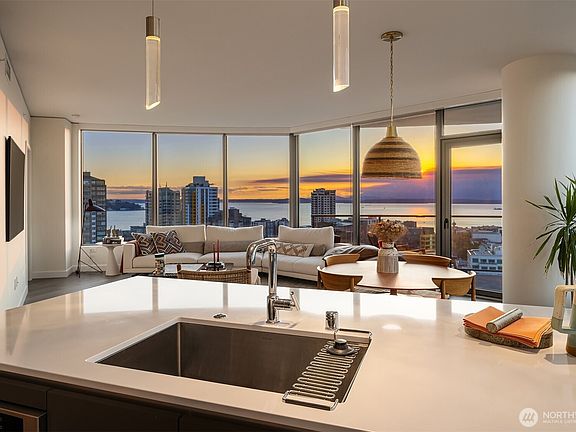 Experience elevated urban living at Spire. This immaculately maintained residence showcases an open layout w/ 9-foot ceilings & wraparound views of the Sound, Olympics, Lake Union, Mt Baker + Space Needle. The island kitchen features European-inspired cabinetry, quartz countertops & Bosch appliances. The well-appointed baths include premium Kohler fixtures, floating vanity w/ quartz counters & extensive tilework. Spire offers extensive amenities including concierge, fitness center, pet area, 40th floor club room, dining, terraces, co-working space, conference room, theater, movement studio & more. At the intersection of Belltown, SLU & Denny Triangle, shopping, dining, entertainment, nightlife & outdoor recreations are all at your doorstep!