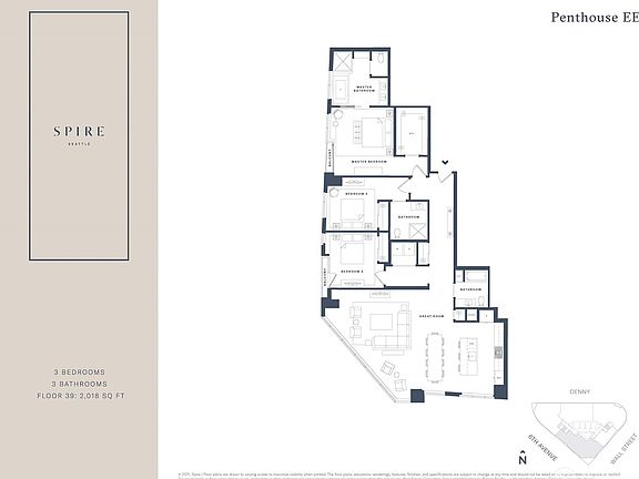 Spire’s Penthouse Collection is here! A stunning SW corner 3 bed combines incredible layout with wraparound views of Elliott Bay, Puget Sound, downtown, and the Olympics that make this home a standout. You will be amazed at the interiors that include Sub-Zero/Wolf appliances, kitchen island with waterfall counters, Jr Primary bed/bath, spa-like primary bath with free-standing tub w/Sound views, two parking and storage locker! Amenities include 24/7 concierge, top floor fitness center, pet run, 40th floor clubroom, dining, terraces, co-working space, theater, movement studio + more. Don't forget about the automated parking providing more luxury to your experience. Spire offers nothing but the best! Buyer must register broker on first visit.