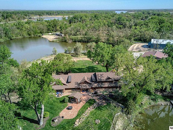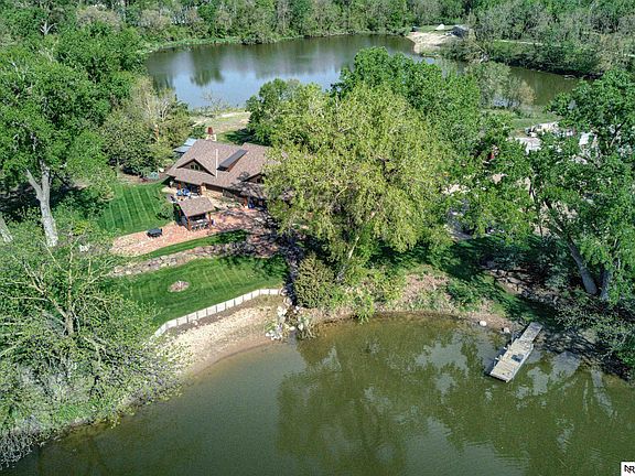 LIVE, WORK, PLAY at this captivating 9-acre estate; the current owner was granted a special use permit to run a small business on the property. Imagine your commute to work steps from your kitchen! Enjoy a PRIVATE LAKE stocked with bass, or relax on your beach & dock. A covered outdoor kitchen on huge patio w/gas firepit complements the manicured lawn. Outbuilding with 3,800 sqft includes heat & 1/2bath. Inside this spectacular home, you'll find a great room with 18' ceilings accented by cedar logs and a wood-burning fireplace. The gourmet kitchen boasts custom cabinetry, an island, and a pantry. The dining room features a gas fireplace and a sitting nook. There's a billiard and bar area, as well as a flex room and a sunroom to enjoy the sunsets. Upper level offers a primary retreat with a ¾ bath & custom closet, plus 3 additional bedrooms w/walk-in closets. 1 bed is currently used as home office with exterior door. NO COVENANTS & LOW TAX LEVY— a must-see for small business owners