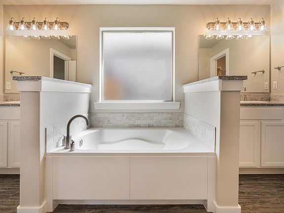 The Alison welcomes you with elegant curb appeal featuring large brick archways, a grand front porch, a brick tower, a triple gable roof, and large windows. Homeowners will enjoy a spacious open concept floor plan with grand 10 ft ceilings. This 2,300 square foot floor plan has 4 bedrooms, 3 bathrooms, and a 2-car garage. For those that love to host family and friends, the expansive kitchen offers a large serving island and double ovens! When it's time to relax, the living room features a cozy fireplace and space for plenty of seating for everyone. This new home offers homeowners a large, isolated master suite with a walk-in closet, his and hers vanities, a tiled shower, and a garden tub. Finally, this new home comes complete with a secluded guest bedroom, a private bathroom, and a convenient utility room with counter space. Make this new home your own and schedule your VIP tour! *Painted brick available as an upgrade to our Alison floor plan.