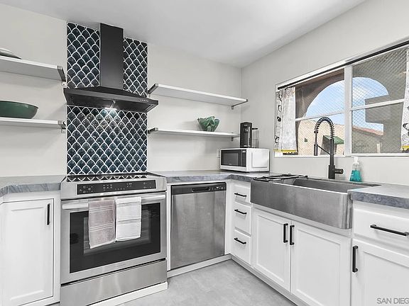 This home offers sweeping Views and stunning sunsets. Perched in one of the neighborhood’s best locations in Bay Park A designer renovation features an open-concept floor plan that seamlessly connects the oversized living room, dining, and kitchen. New upper cabinets with open shelving natural quartzite countertops, Induction cooktop/range, striking 32-inch hammered stainless steel sink. Freestanding peninsula island — perfect for casual dining. Fresh, Modern & Ready for You in Bay Park! Freshly painted, luxury vinyl tile flooring, a custom-built fireplace, and a beautifully tiled walk-in shower. With 864 sq. ft. plus an enclosed patio (total approx. 924 sq. ft.), this home blends style, comfort, and convenience. Just minutes from Mission Bay, local restaurants, shopping, the I-5 freeway, and the San Diego Trolley line with direct service to UCSD and downtown. Fresh, Modern & Ready for You in Bay Park! Move right in and enjoy a bright open floor plan, quartzite counters, induction cooktop, and beautifully tiled walk-in shower. Close to shopping, and coastal adventures. With 864 sq. ft. plus an enclosed patio (total approx. 924 sq. ft.), this home blends style, comfort, and convenience. Enjoy Bay views and night lights from your extended enclosed patio and bedroom. You will love the comfort of this home.