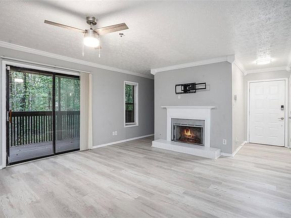 Gas fireplacePrivate patioFloor to ceiling windowStainless steel appliancesSeparate dining areaModern kitchenBreakfast bar