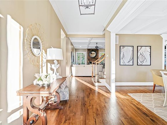 Beautiful custom home situated in the charming neighborhood of Gates at Brassfield. You will be immediately welcomed by the open space, gorgeous ceilings and moldings, and the large room sizes. The main floor is perfectly designed for anyone who likes to entertain while still enjoying daily living. The dining room and large hallway flow into a formal living area with a fireplace, then into a family room with another beautiful fireplace, next you’ll find a modern, commercial-grade kitchen, and breakfast area. Enjoy outdoor living on your wonderful deck and custom-built patio with an outdoor fireplace. Retreat to your large primary suite with a soaking tub, multi-head shower, separate dressing areas with sinks/cabinets, and walk-in closets. You’ll find a gorgeous, well-lit staircase to the 4 large-sized rooms with plenty of storage on the upper floor. The largest room could be used as a bedroom, media room, office, or whatever your heart desires!