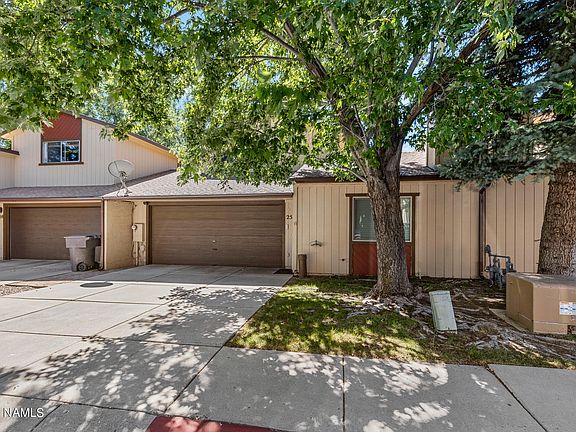 Welcome to your new home in the heart of Greenlaw Townhomes, a beautifully maintained and spotlessly clean residence centrally located for ultimate convenience. This delightful townhome features three bedrooms and two bathrooms, including a conveniently situated bedroom and full bath on the main floor—perfect for guests or multi-generational living. Enjoy the practicality of a separate laundry area and the charm of a quaint, fenced backyard, ideal for relaxing, gardening, or entertaining. The property also includes a two-car garage and offers beautiful views of Mt. Elden from the street, adding a scenic touch to your daily life. While the home is move-in ready, and all windows are new within the last 2 years, a touch of updating and your personal imagination can transform it into a truly stunning residence tailored to your taste. Don't miss this opportunity to own a well-kept home in a desirable community.