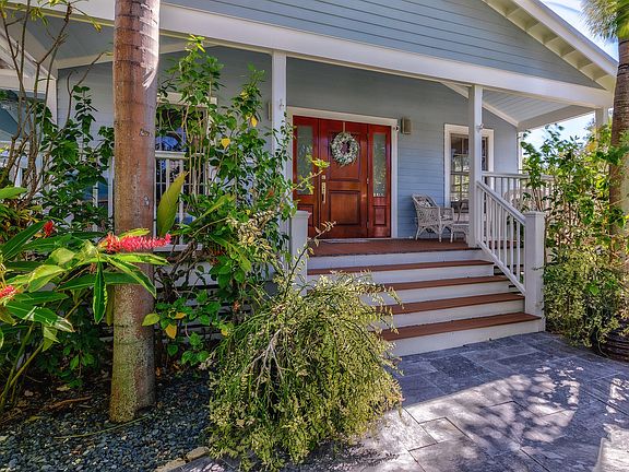 This luxury, elevated, one-level home, on a rare double lot with a lush, tropical resort-style pool area, fenced with complete privacy, is tucked in the heart of midtown Key West. This tropical oasis features a supersized primary bedroom suite, extra-large 2nd bedroom/guest bathroom, and built-in Murphy bed/bookcase for extra guests. All surrounded by mature landscaping, elegant landscape lighting, a wrap-around porch overlooking the fabulous heated/chilled pool with soothing waterfalls, and a large pool deck for lounging in the Key West sun.This home is filled with charm, even the guest bathroom features an artistic ocean-inspired coral mosaic. Designed for entertaining, the open-concept showcases high ceilings, abundant natural light from many windows and French doors, accented wood beams, and gleaming hardwood floors. The chef's kitchen is a dream, complete with a 5-burner gas range, granite countertops, spacious center island with built-in wine/beverage chiller. The inviting indoor-outdoor living and multiple outdoor seating areas make it ideal for all occasions, whether hosting guests or enjoying a quiet evening.The elegant primary suite serves as a private oasis offering a sitting area, luxurious bathroom with a large tub, walk-in shower, and a walk-in closet. The outdoor living areas include a tranquil, covered, lighted outdoor pavilion for meditation, yoga, or dining outdoors, multiple seating/lounging/dining areas, and a fire pit, creating the perfect atmosphere for both relaxation and entertaining.Additional highlights include impact windows and doors, metal roof, no-maintenance turf, and an irrigation system. Offering off-street parking with a motorized gate and room for multiple vehicles (a car plus RV/boat area with 30 amp circuit) as well as a security system with cameras, this home blends luxury, privacy, and functionality. Live the Key West lifestyle in this stunning, meticulously maintained property.