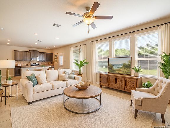 Welcome to the heart of the Ladera subdivision, where comfort, convenience, and community all come together. This beautiful 3-bedroom, 2.5-bath home offers an open and inviting layout from the moment you walk in. The spacious office space is perfect for working from home, and the open-concept living room and kitchen flow effortlessly, creating the ideal setting for everyday living, entertaining, and family time. Step outside to your great-sized backyard, perfect for weekend BBQs, pets, or simply enjoying the breeze. With a greenbelt behind you, there's no need to worry about losing a football over the fence or sacrificing privacy. It's truly the perfect blend of space and peace. Location is everything, and this home delivers. You'll enjoy easy access to Hwy 211 and Hwy 90, plus you're just minutes from supermarkets, restaurants, shopping, gas stations, and the best part... the golf course. Whether you need to get to Lackland Air Force Base, run quick errands, or take a relaxing drive to Castroville, everything is right at your fingertips. Even a movie night is just a short distance away. This home gives you the perfect mix of quiet neighborhood living with unmatched convenience. Come see why life in Ladera feels so easy.