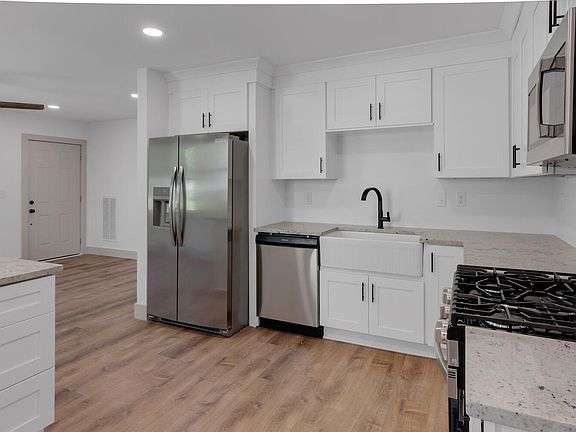 Gas stoveLarge yardCustom cabinetsQuartz countertops